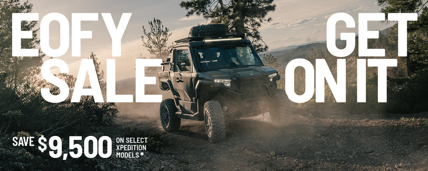 Polaris EOFY Sale Now On. Unlock EOFY savings on the Polaris Xpedition—built for hard work, long hauls and uncompromising terrain. Built for work and play!